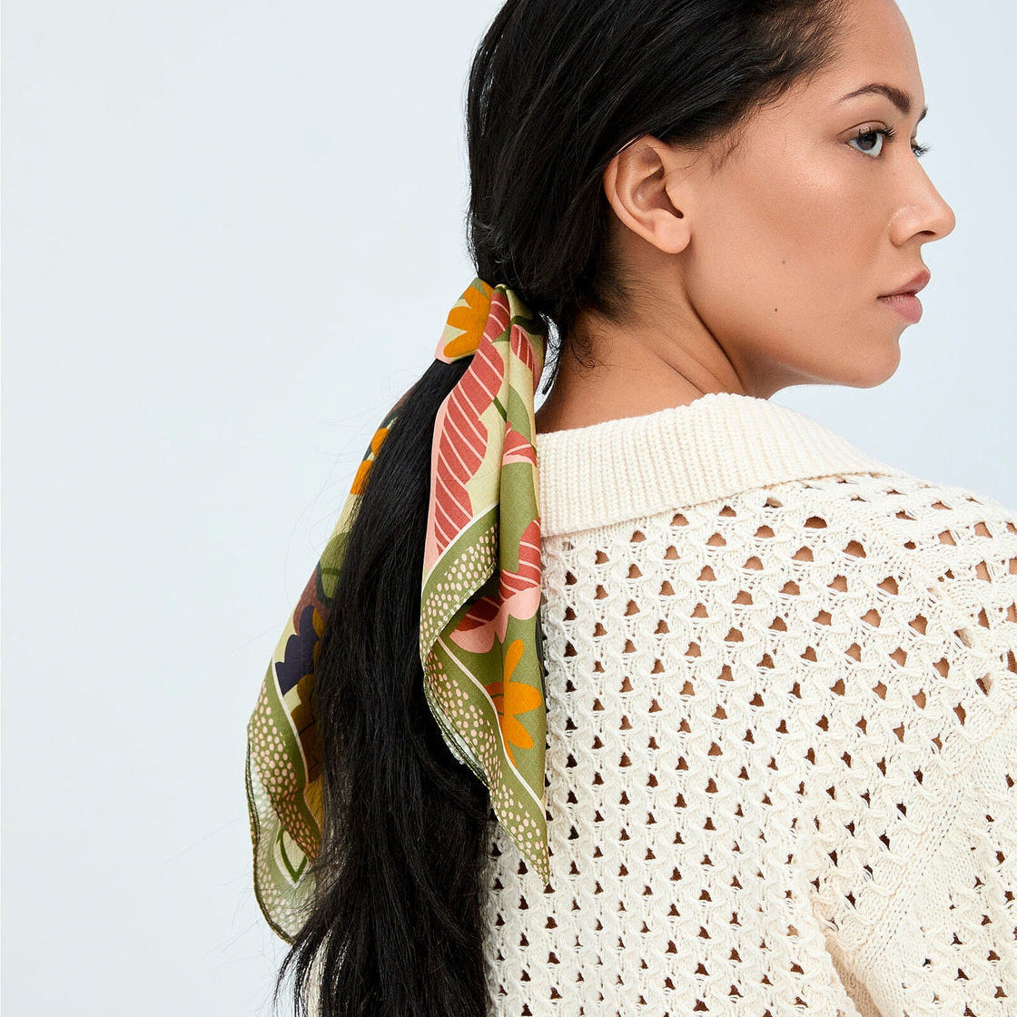 This size neckerchief is ideal to wear around your neck, in your hair, or as an accent on your bag.