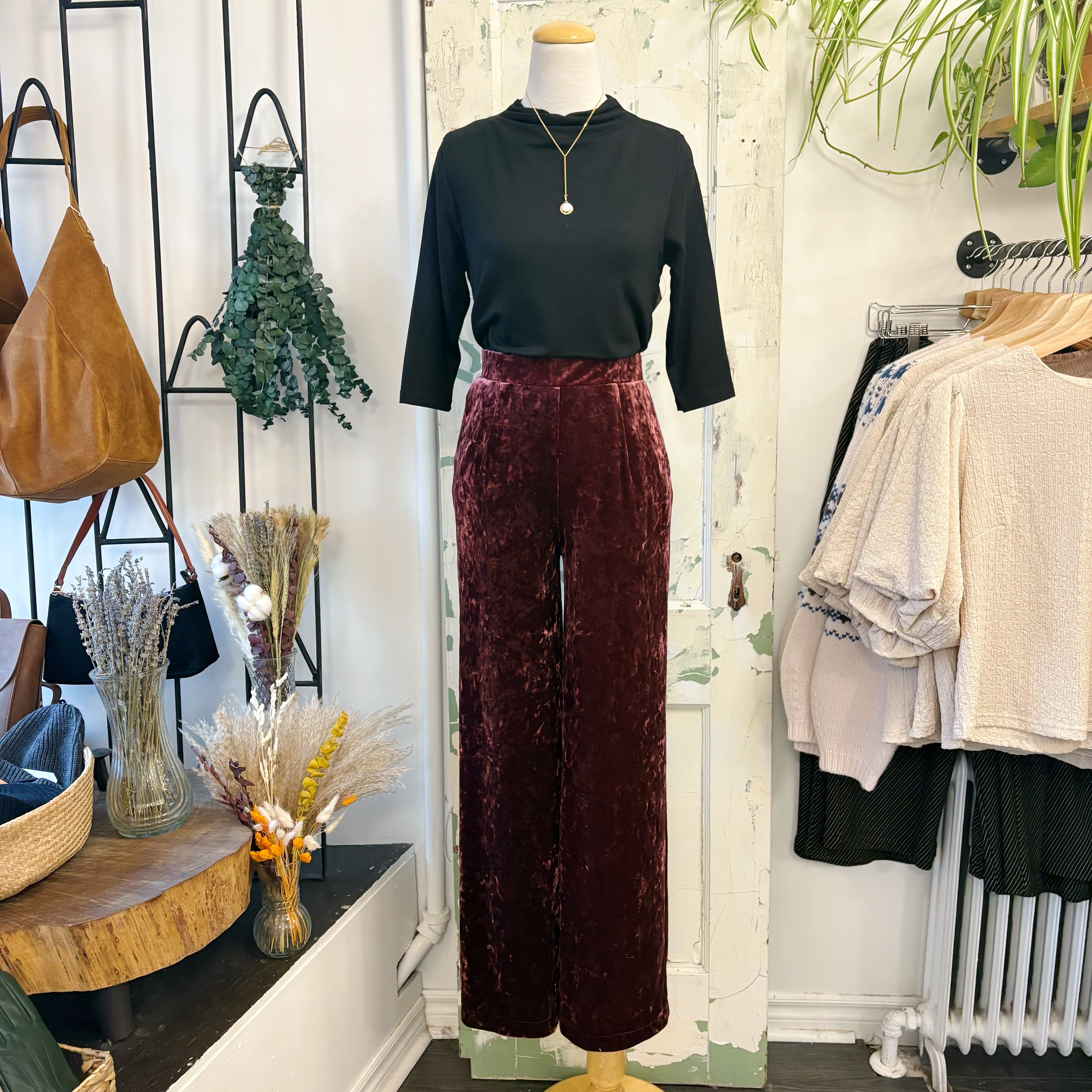 Statement-making, stylish and comfortable- these wide leg velvet pants by Dagg and Stacey are perfect for the holidays and beyond. A great standalone piece, and even better with the matching Avaline suit jacket.