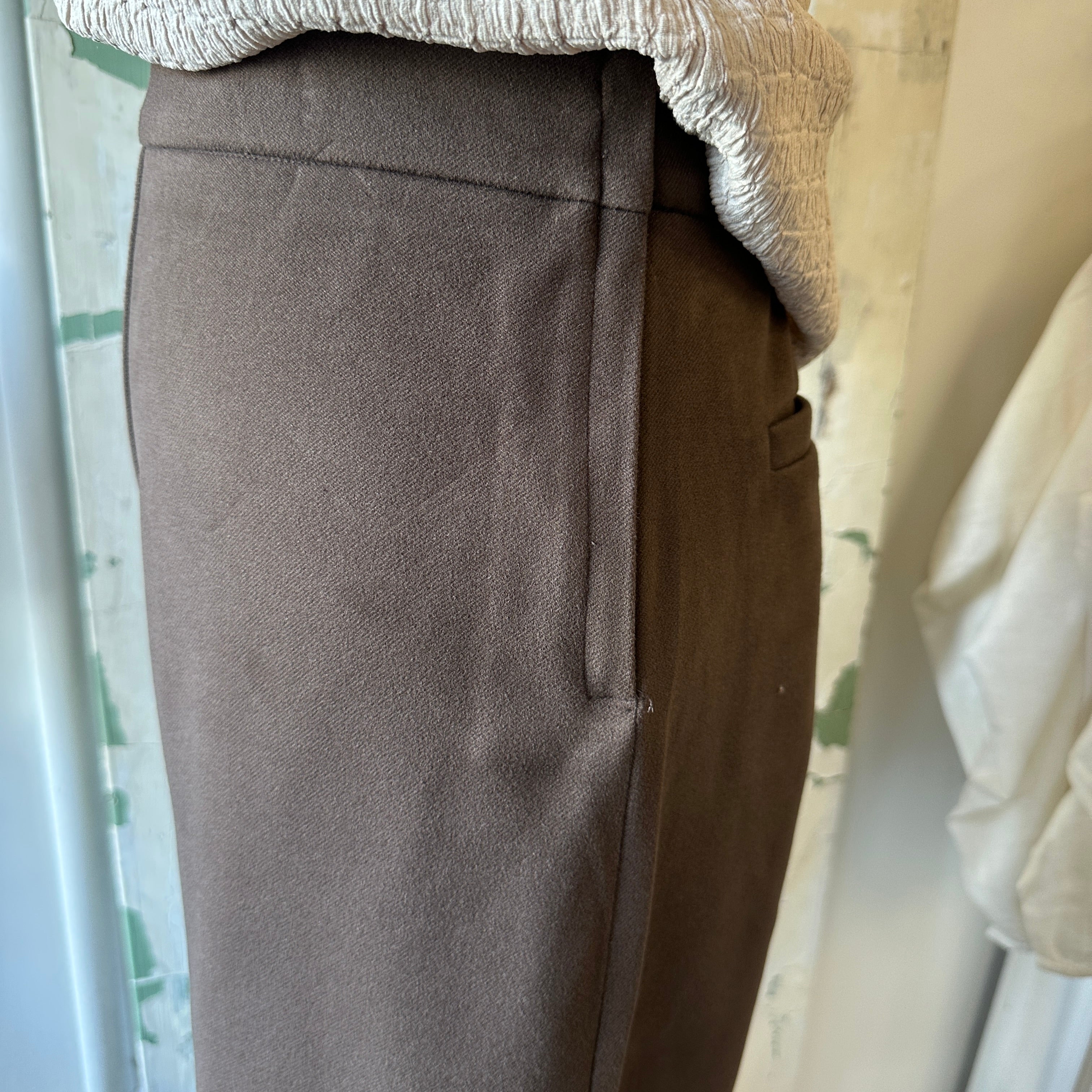 Wide-legged cropped pant in a super soft mid-weight fabric. Flat front with a side zip closure and welt pockets at back. The Nadias are a best-seller year after year! A great work pant.