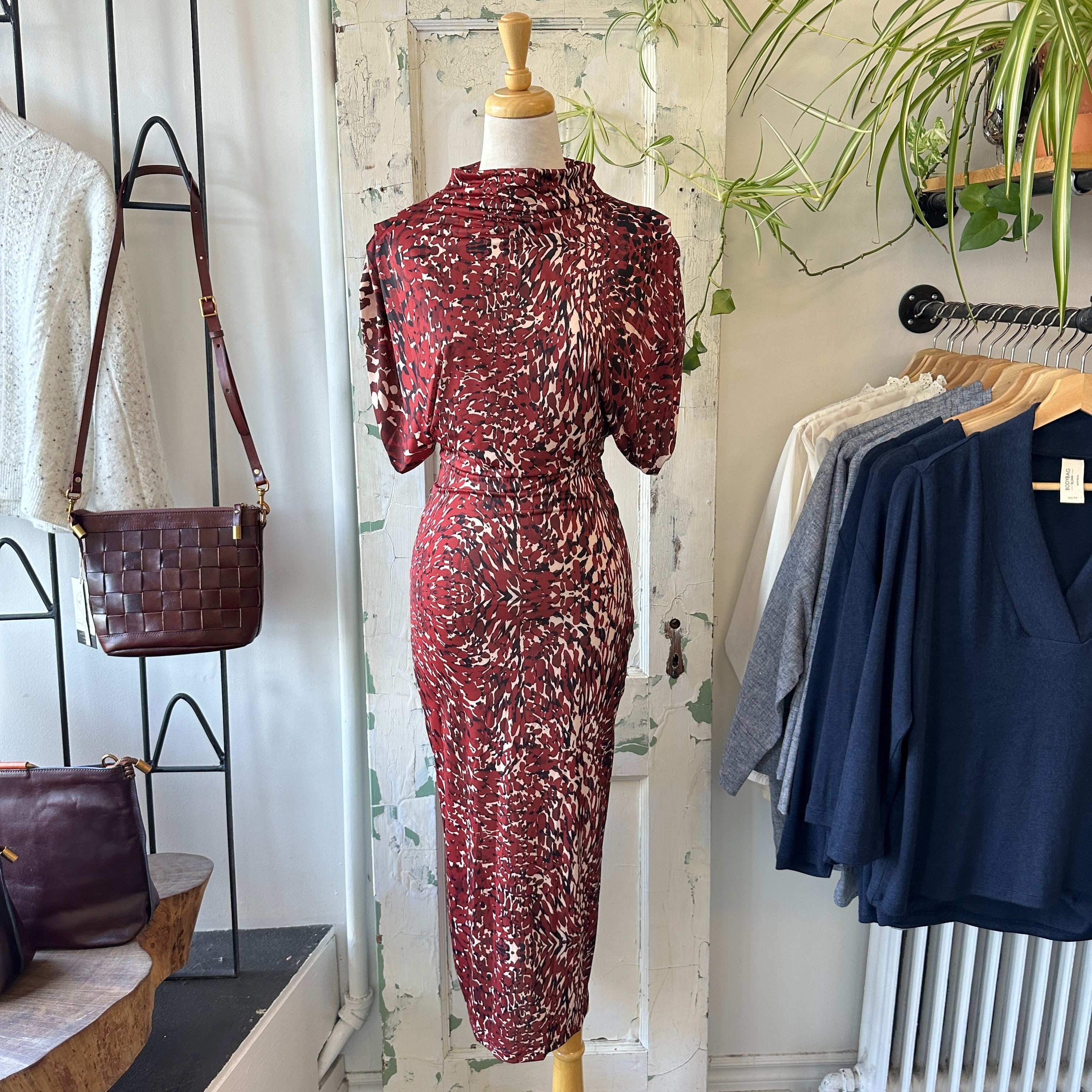 Astrid // Maroon Speckle Print Dress