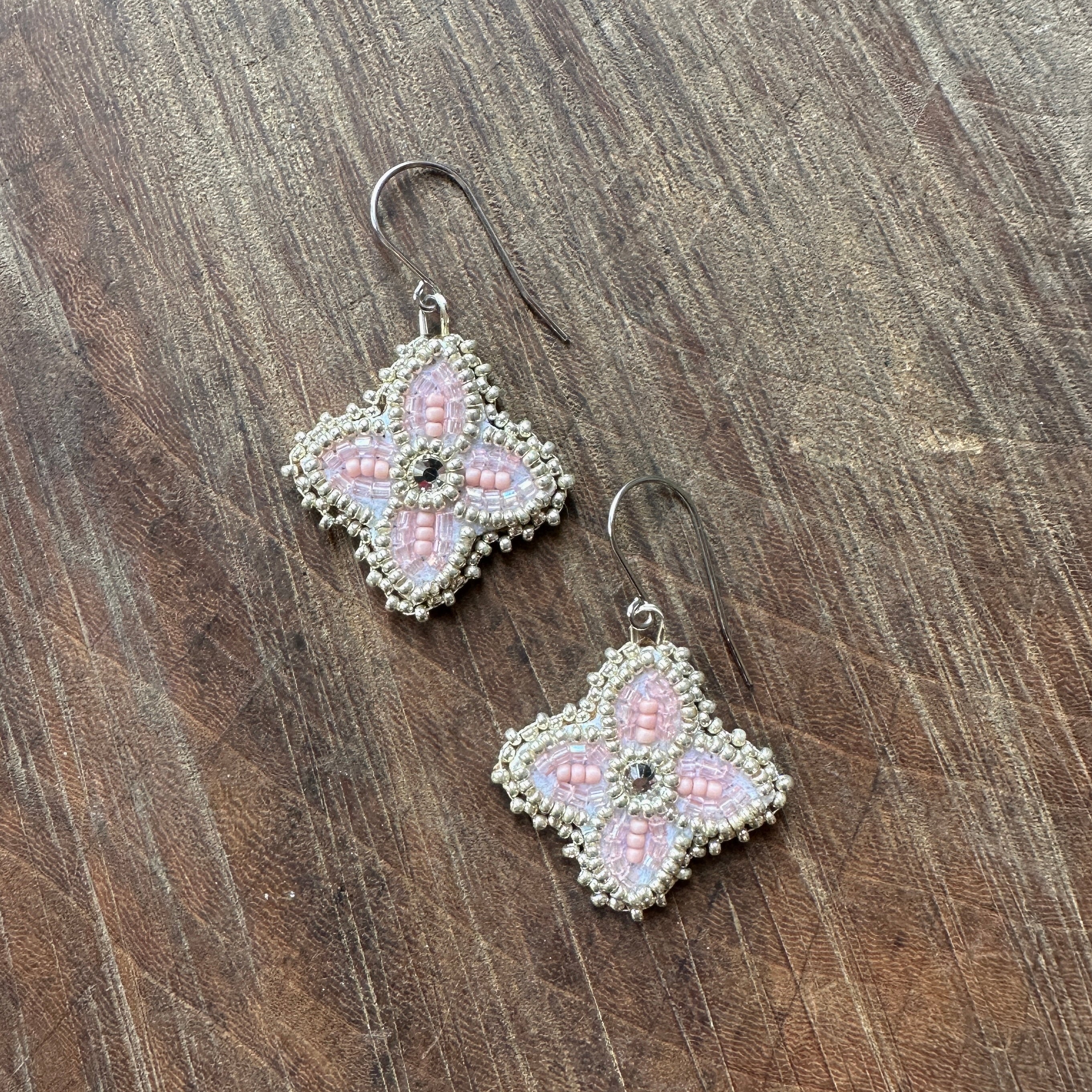These earrings are inspired by traditional Ojibwe floral designs. All beaded by hand. Each pair of beaded earrings are unique.