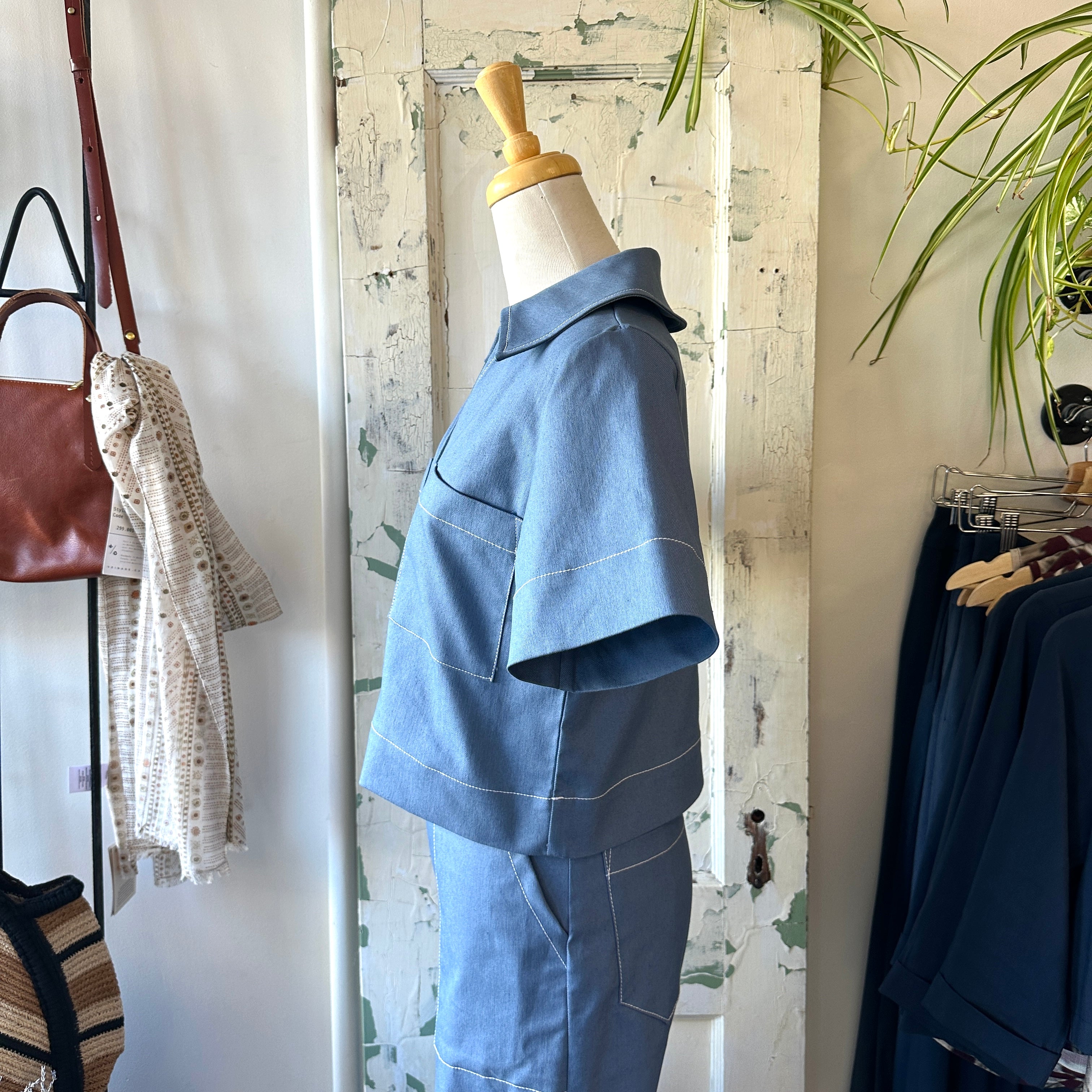 Cassie is the short-sleeved stretch denim top that redefines simplicity. Not too dressy, not too casual—just right. Layer it under a jacket or wear it on its own. Pair it with the Rocky Jeans for the perfect matching set.