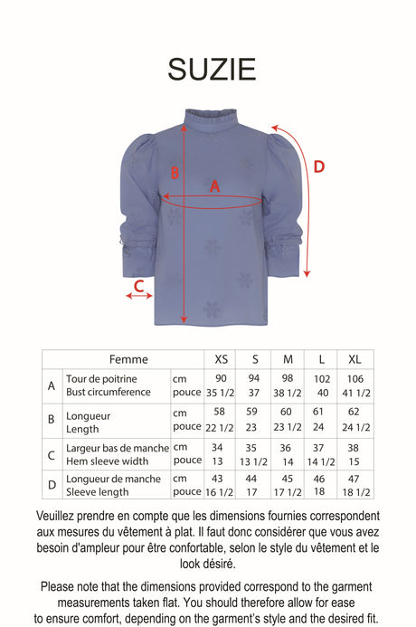 The Suzie top combines comfort and elegance with its puff sleeves and delicate floral eyelet embroidery. Made from 100% Oeko-Tex certified BCI cotton, this top exudes softness and quality.
