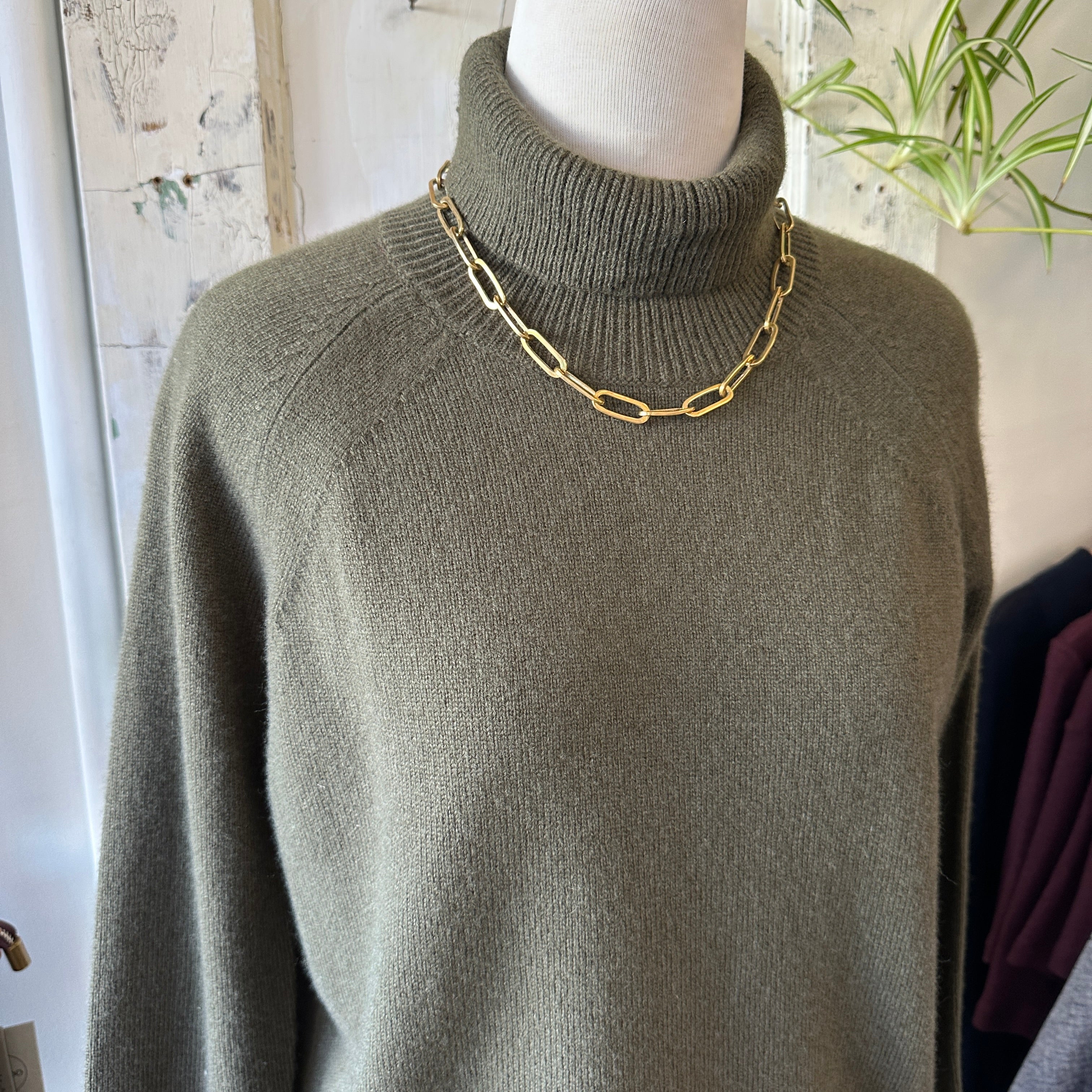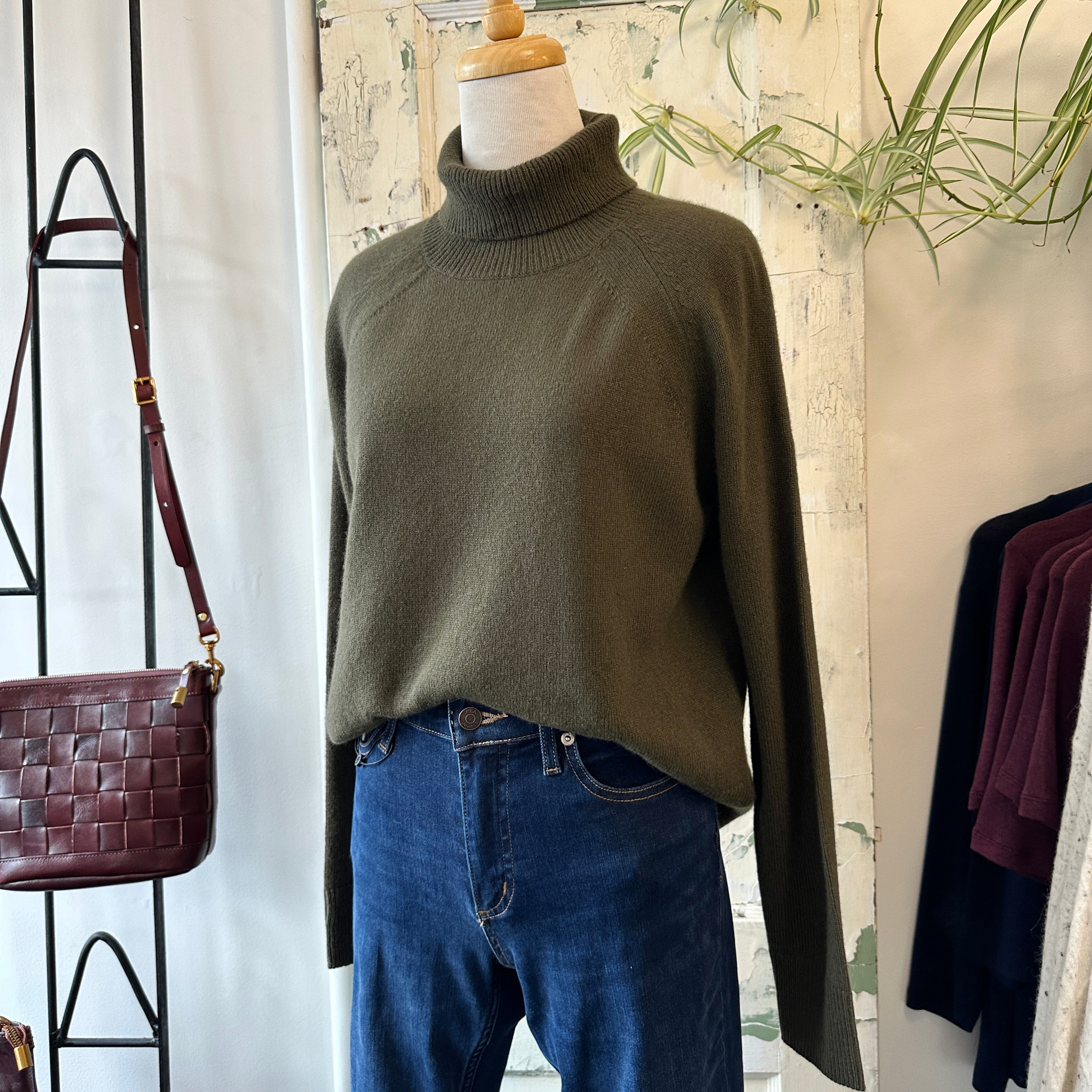 Classic turtleneck in a fine merino knit. Relaxed fit. Features a raglan sleeve and ribbed hem and cuffs.