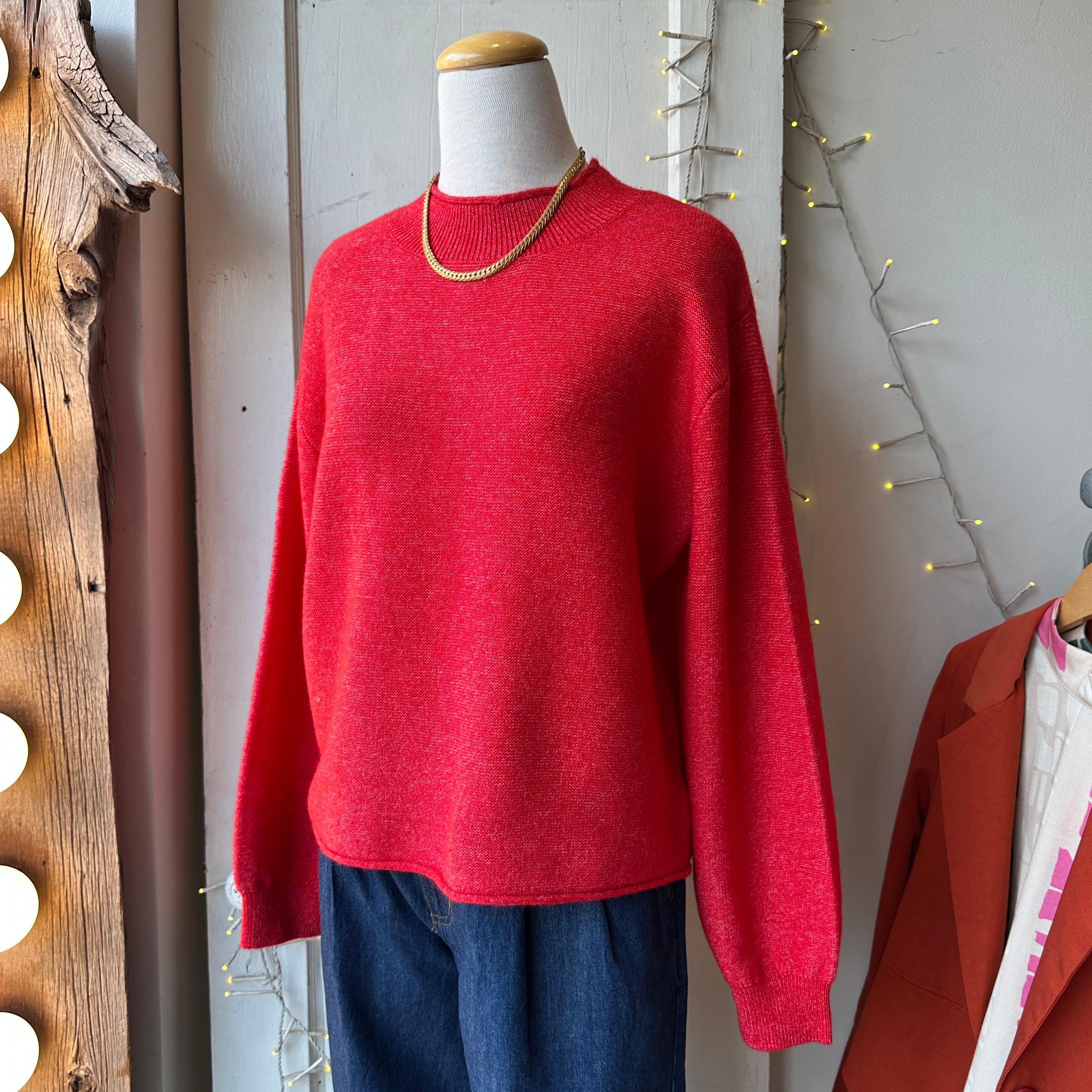 The Wanda is made of a soft, brushed yarn. Features include a rolled detail at the neckline and hem for an effortless feel