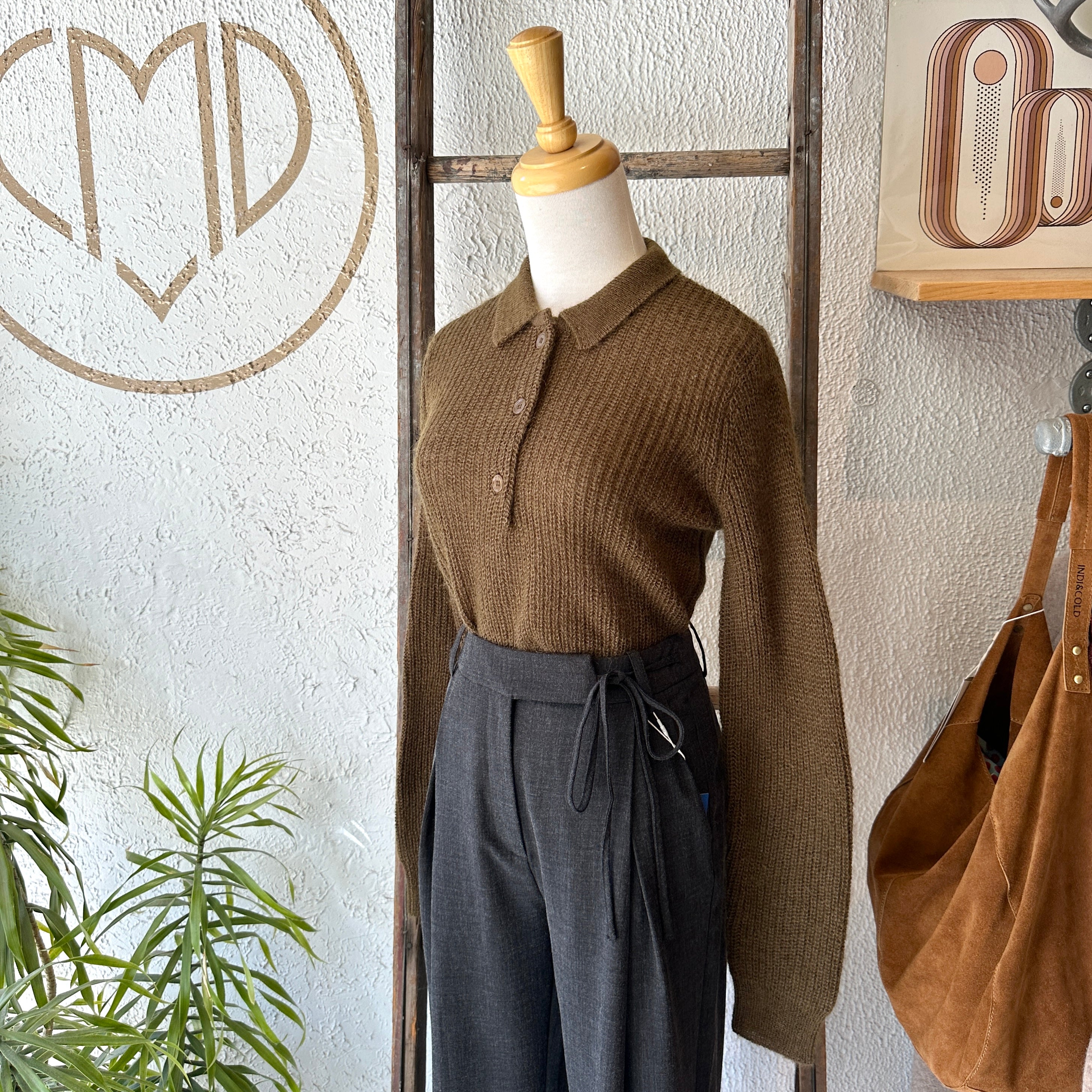 Polo sweater in a delicate ribbed knit. We love the preppy feel of this sweater that looks great with denim or tucked into trousers.