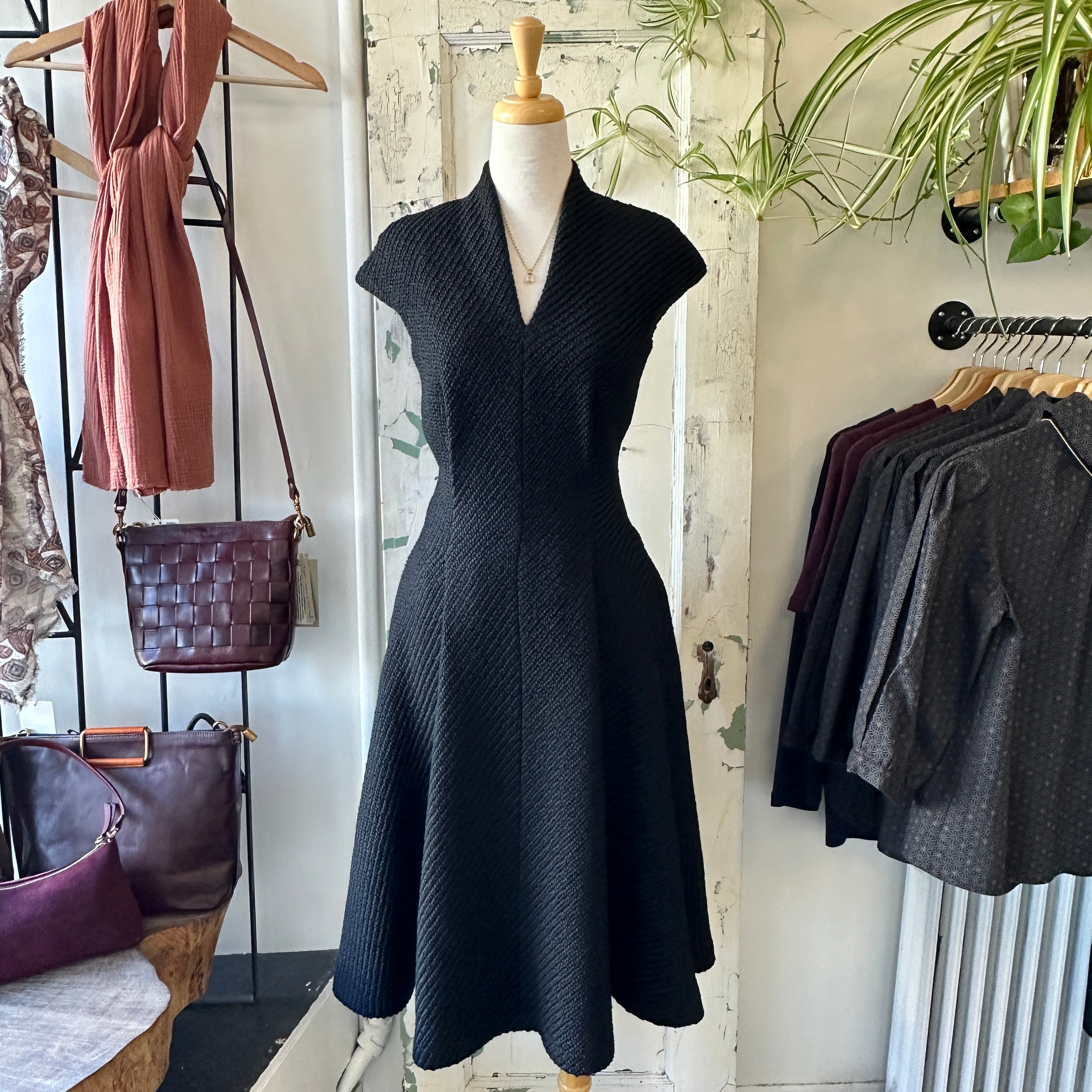 Stocked at our 87 Roncesvalles Avenue location. A refined silhouette, this fitted tweed dress is designed to elevate the everyday and transition effortlessly into evening. Woven from a structured wool blend and fully lined, the fabric holds its shape...