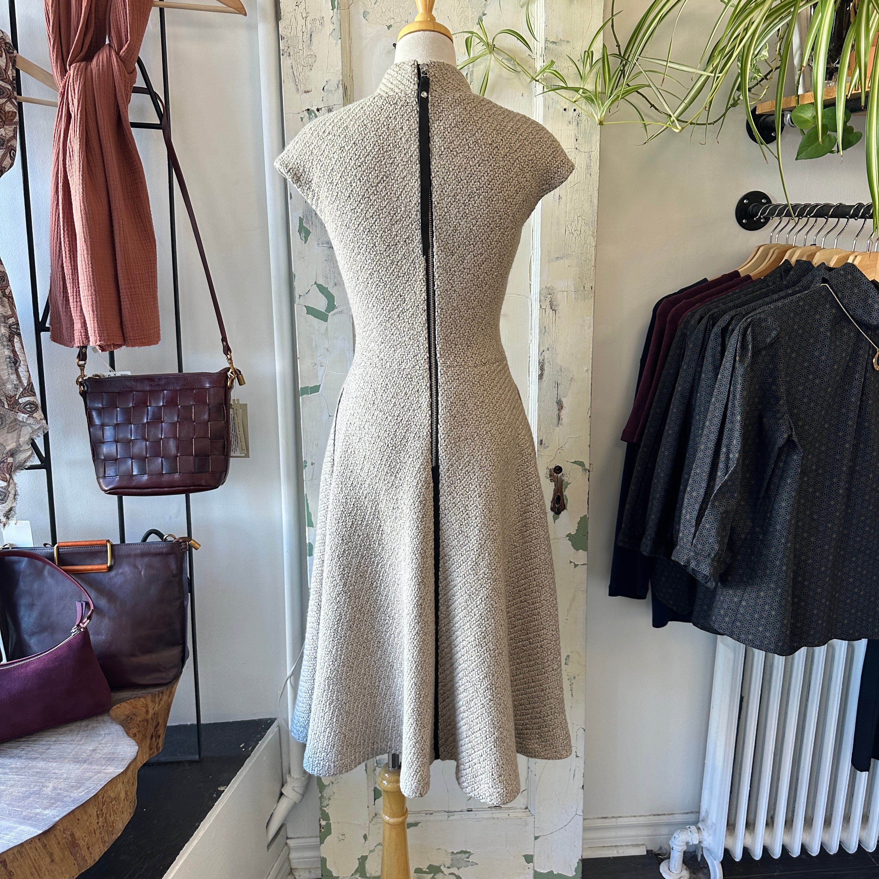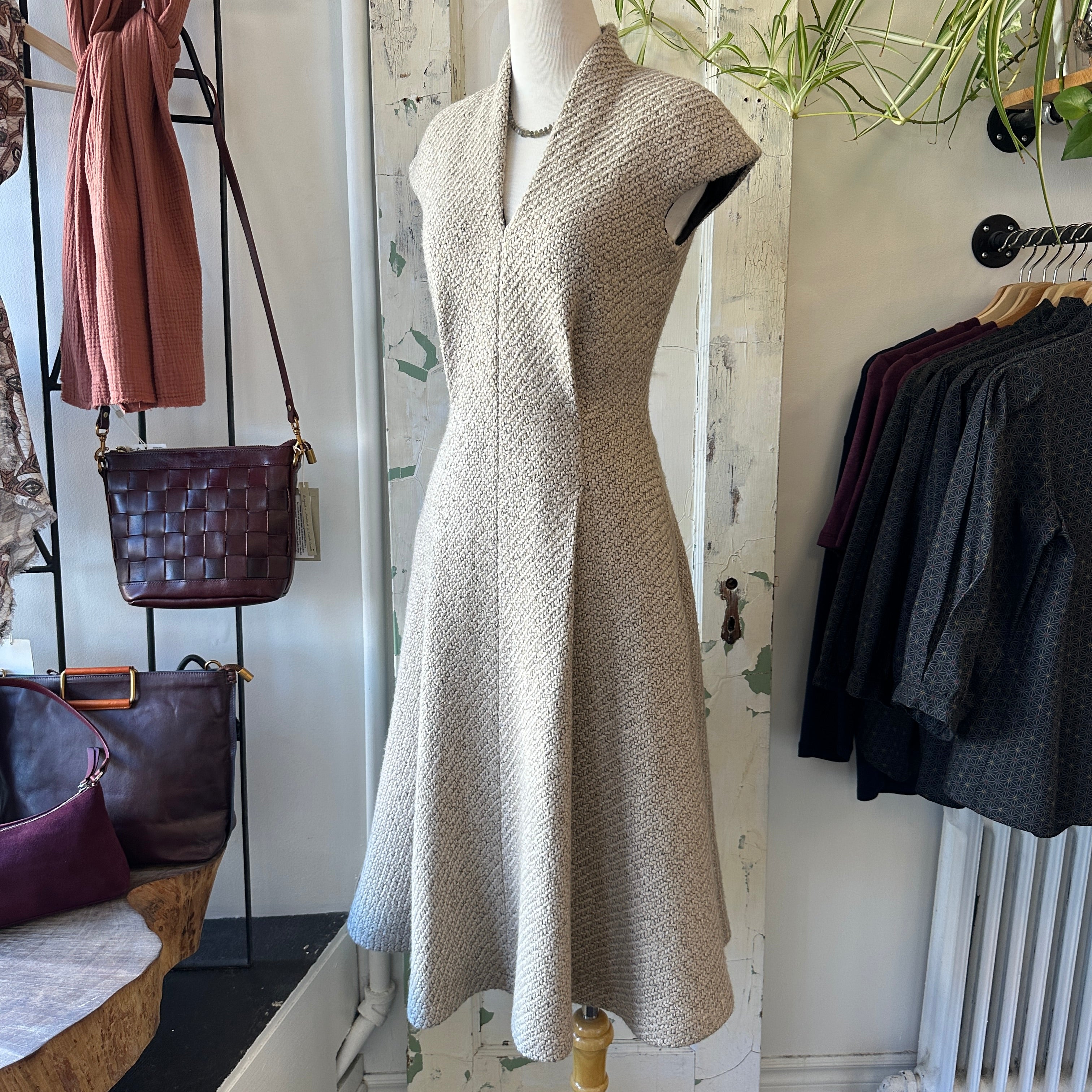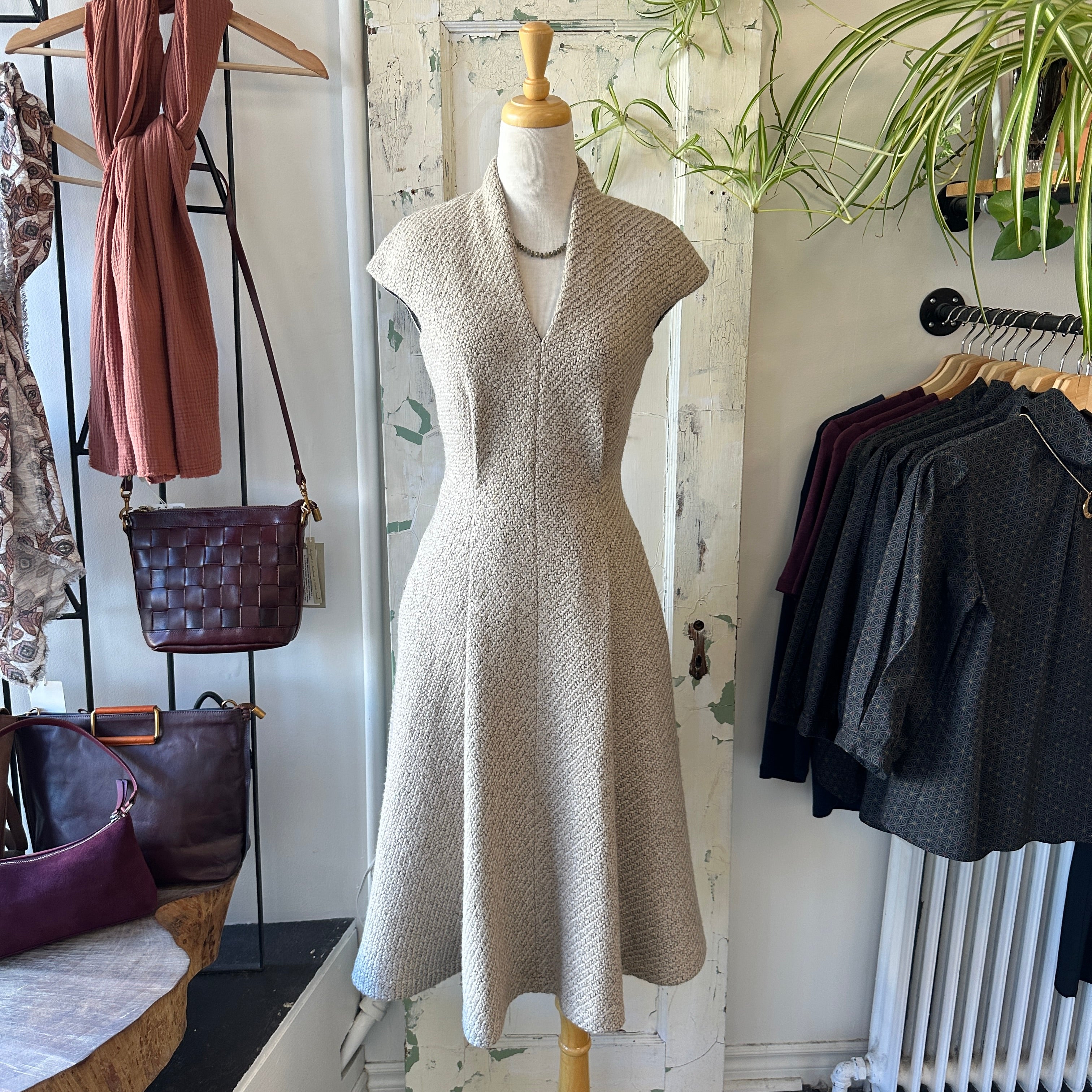 A refined silhouette, this fitted tweed dress is designed to elevate the everyday and transition effortlessly into evening.