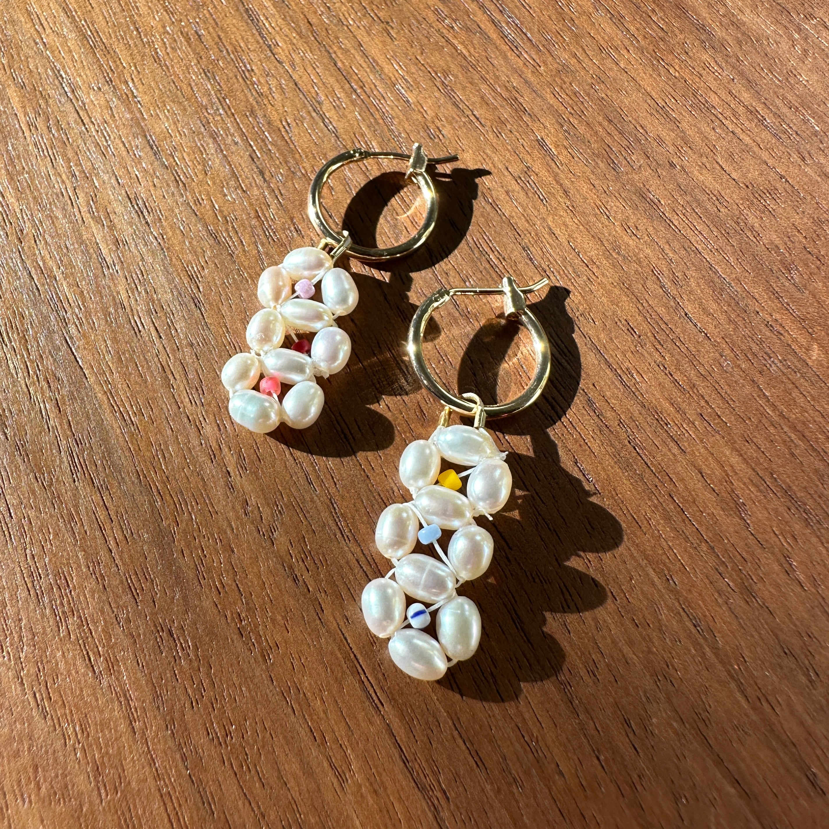 Delicate freshwater pearls and Japanese glass beads woven in a sweet floral motif hang upon a gold-filled hoop. All earrings are joyfully handwoven using the finest quality Japanese glass seed beads. They are finished with 14k gold filled french ear...