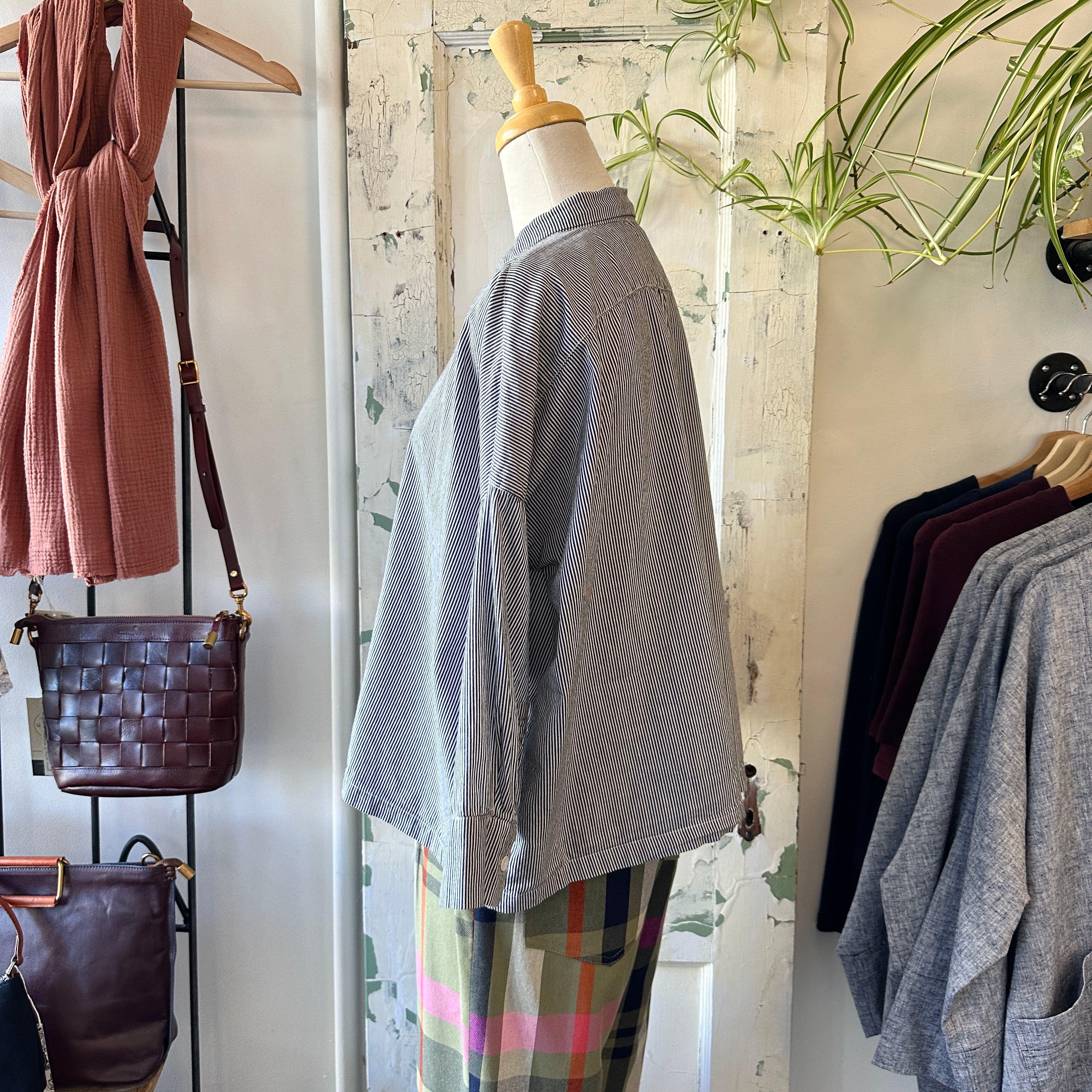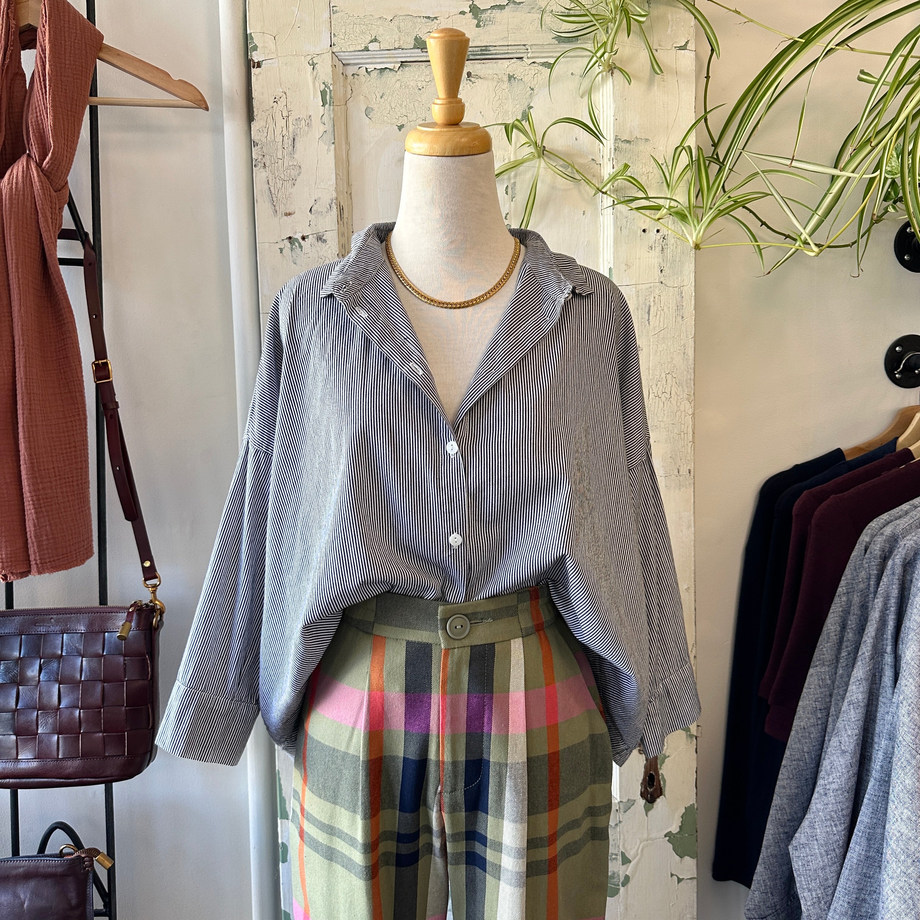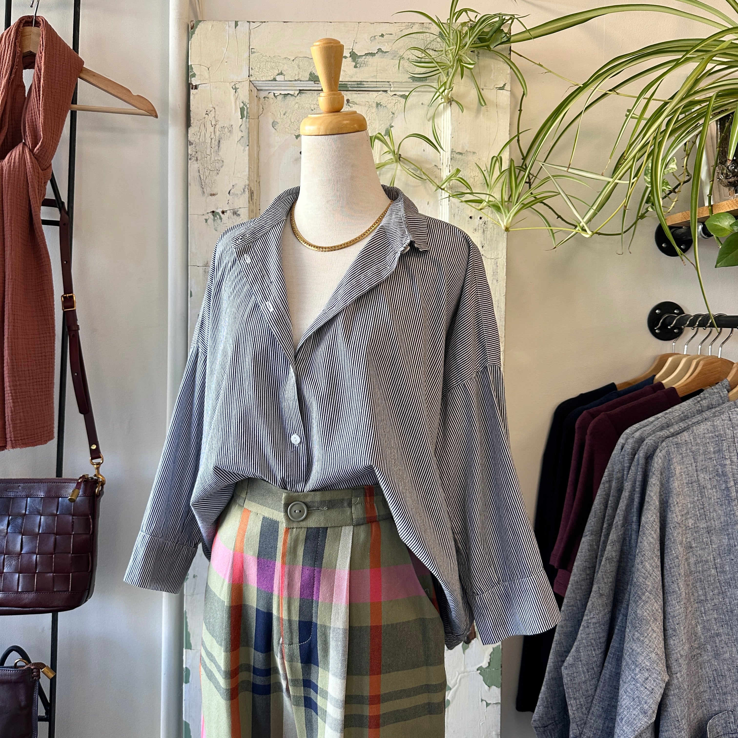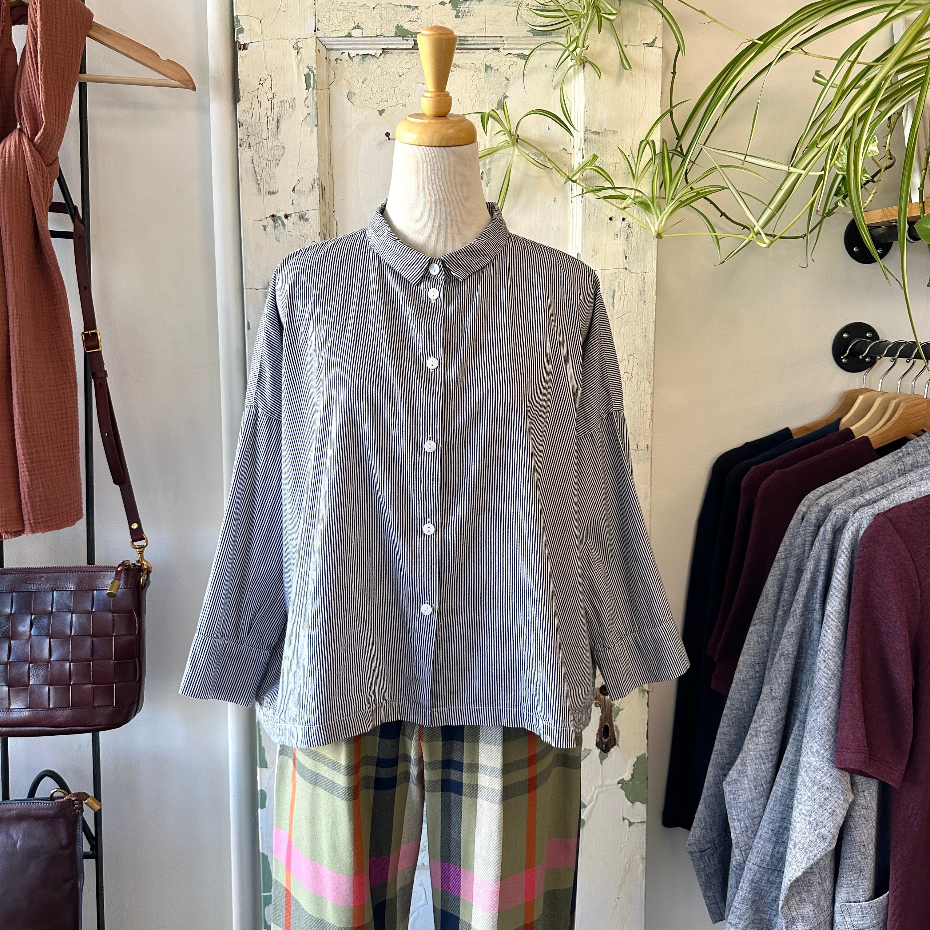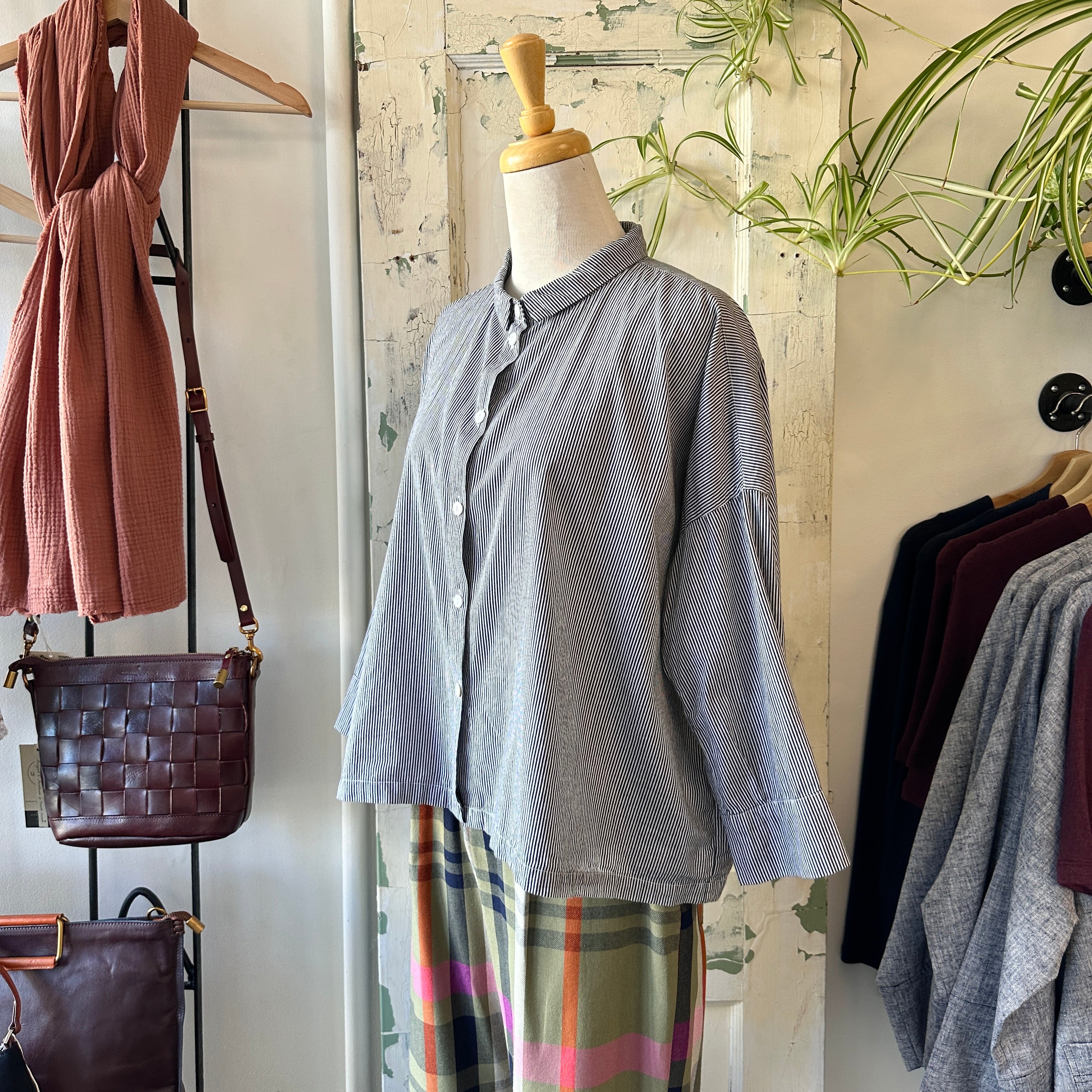Stocked at our Junction location, 3095 Dundas West   A boxy button down that features a petite collar, and fitted sleeves. Slightly cropped in length with a square fit.  100% CottonCare Instructions   Hand wash cold, hang to dry.  ...