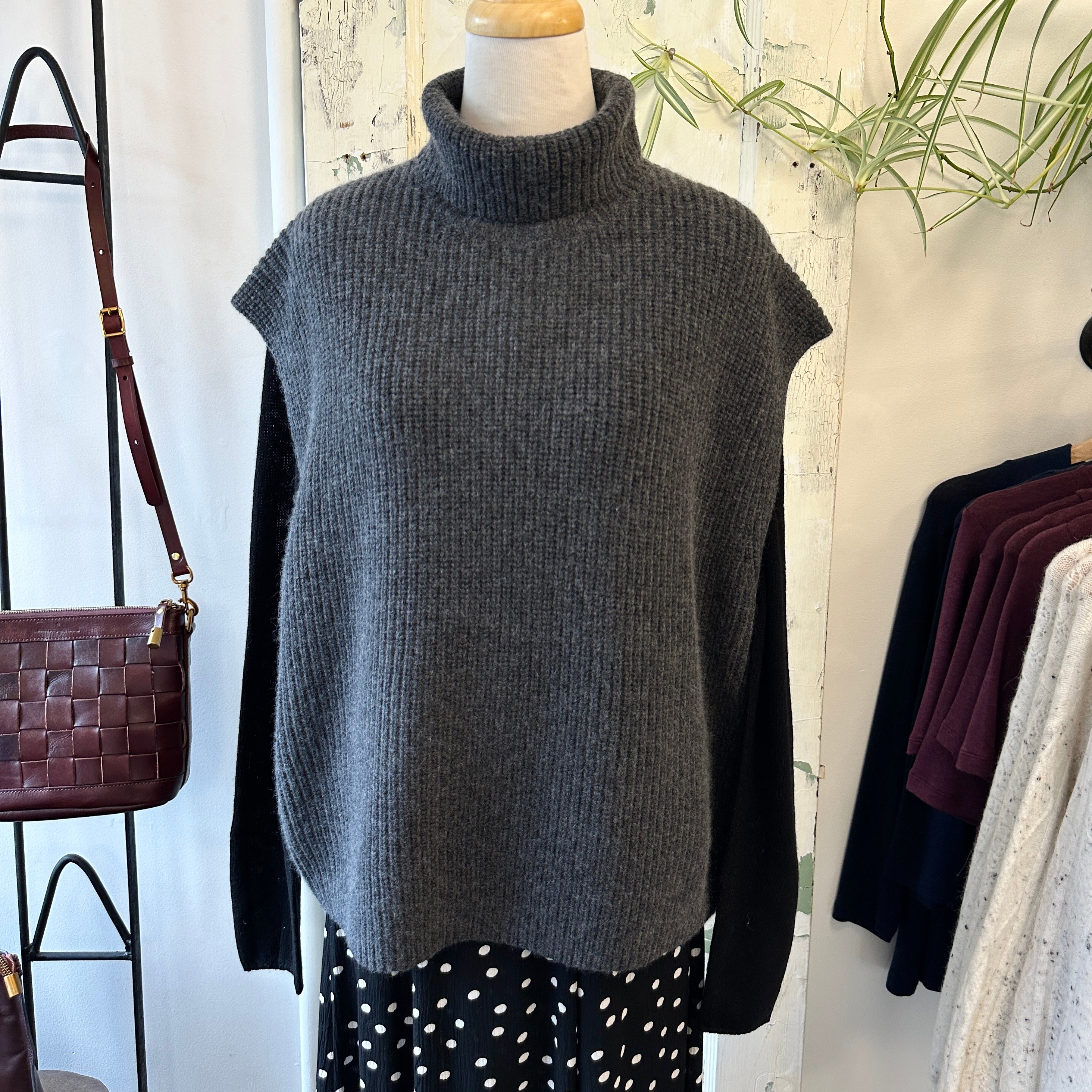 Stocked at our 87 Roncesvalles Ave shop   Cozy and chic, the Moselle vest has an oversized fit in a ribbed knit. Large armholes make this a great layering piece.  10% Cashmere, 90% WoolCare Instructions   I prefer to be...